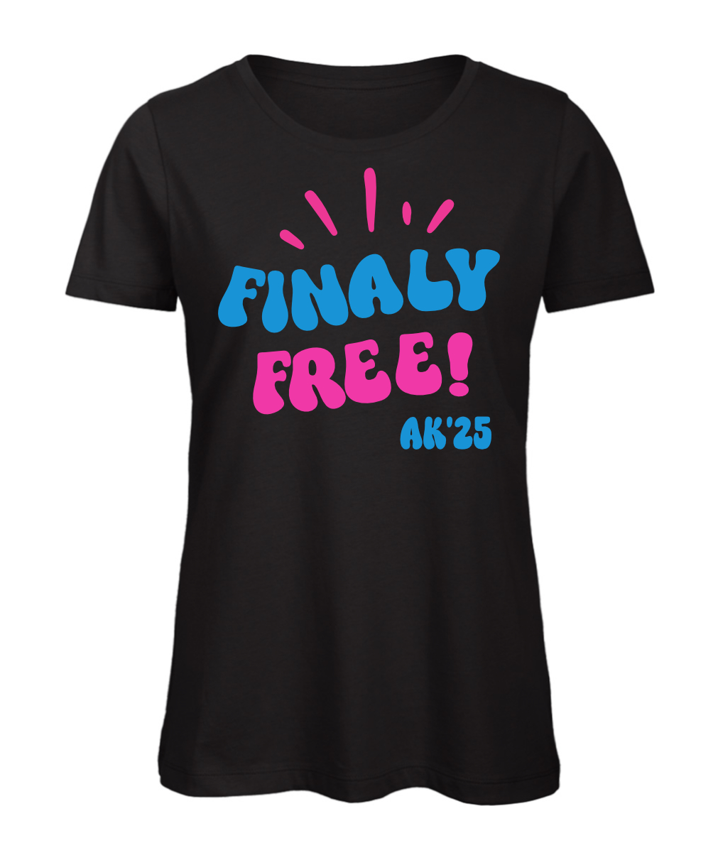 Das „Finaly Free“ Abschluss T-Shirt für Mädels ist das perfekte Statement für Abi und Schulabschluss. Der taillierte Schnitt sorgt für eine sehr gute Passform, während der hochwertige Druck euer Design optimal zur Geltung bringt. Die Jahreszahl sowie persönliche Hinweise könnt ihr ganz einfach im Bestellfeld angeben – unsere Grafiker passen alles professionell für euch an. Ideal für Abschlussklassen, Abiturientinnen oder Schulabschlüsse jeder Art. Bequem, modern und perfekt für Motto-Woche, Abschlussfeier und Erinnerungsfotos.