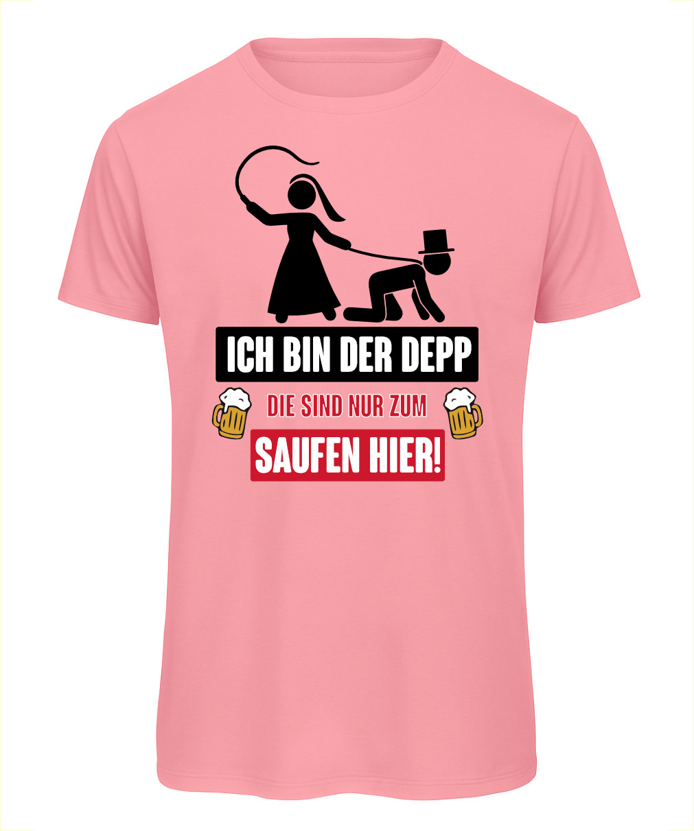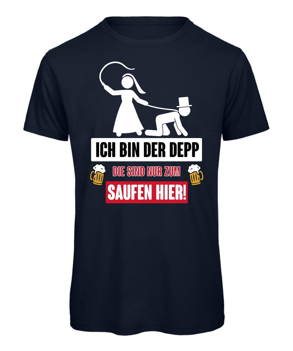 Dieses T-Shirt macht klar, wer heute der „Depp“ ist – natürlich der Bräutigam! Das ideale Outfit für Junggesellenabschied, Polterabend oder Kneipentour. Mit seinem auffälligen Aufdruck sorgt es für Lacher und unvergessliche Gruppenfotos. Bequemer Schnitt, hochwertiger Druck – bereit für einen legendären Abend!